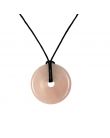 Donut en quartz rose de 3cm vendu avec cordon noir. Cette pierre, liée à vénus, est un véritable cocon d'amour et de douceur qui incite à la tendresse.